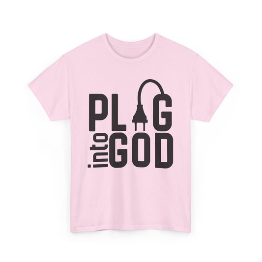 Inspirational Religious T-Shirt, Plug into God Tee, Christian Apparel, Faith-Based Gift, Casual Wear, Everyday Inspiration