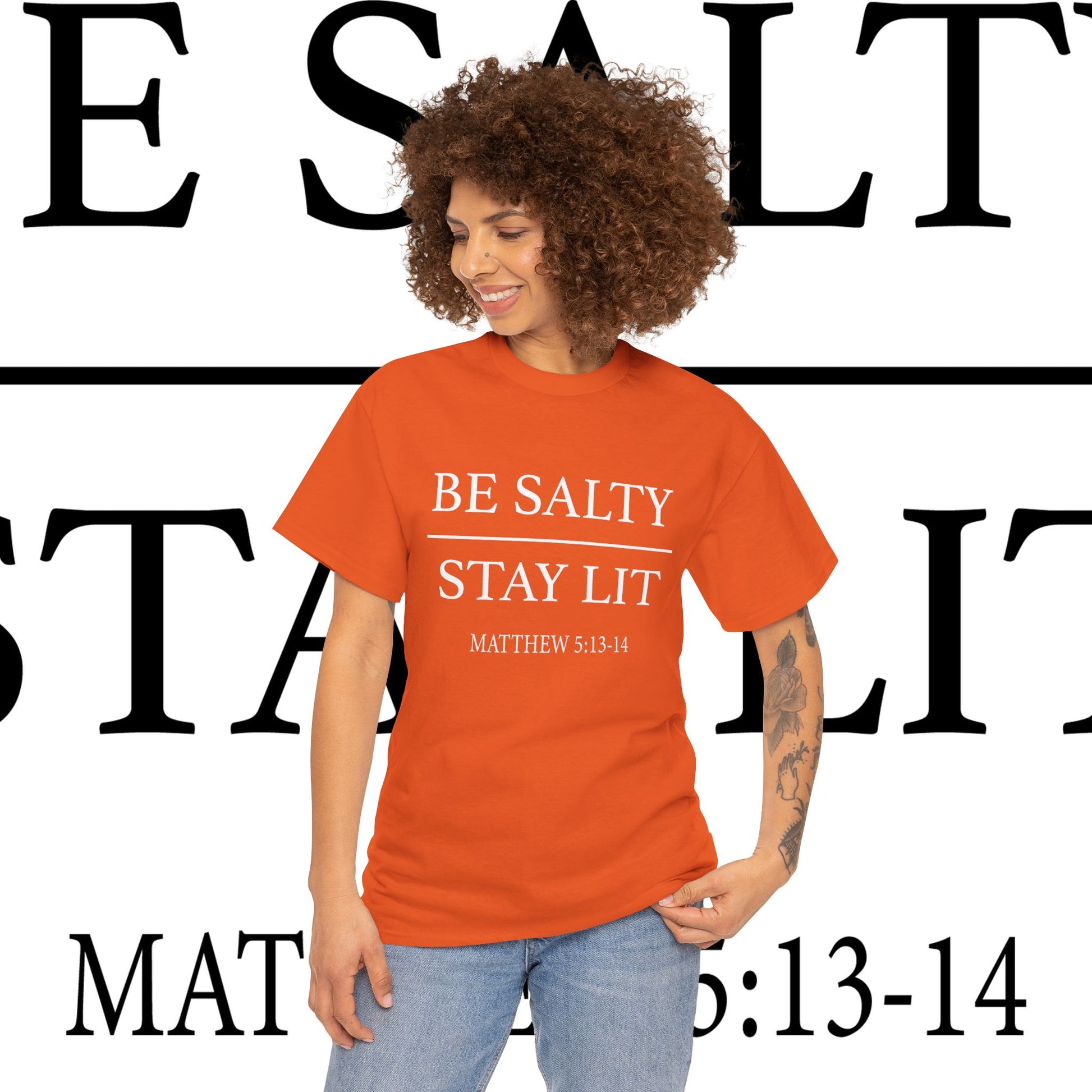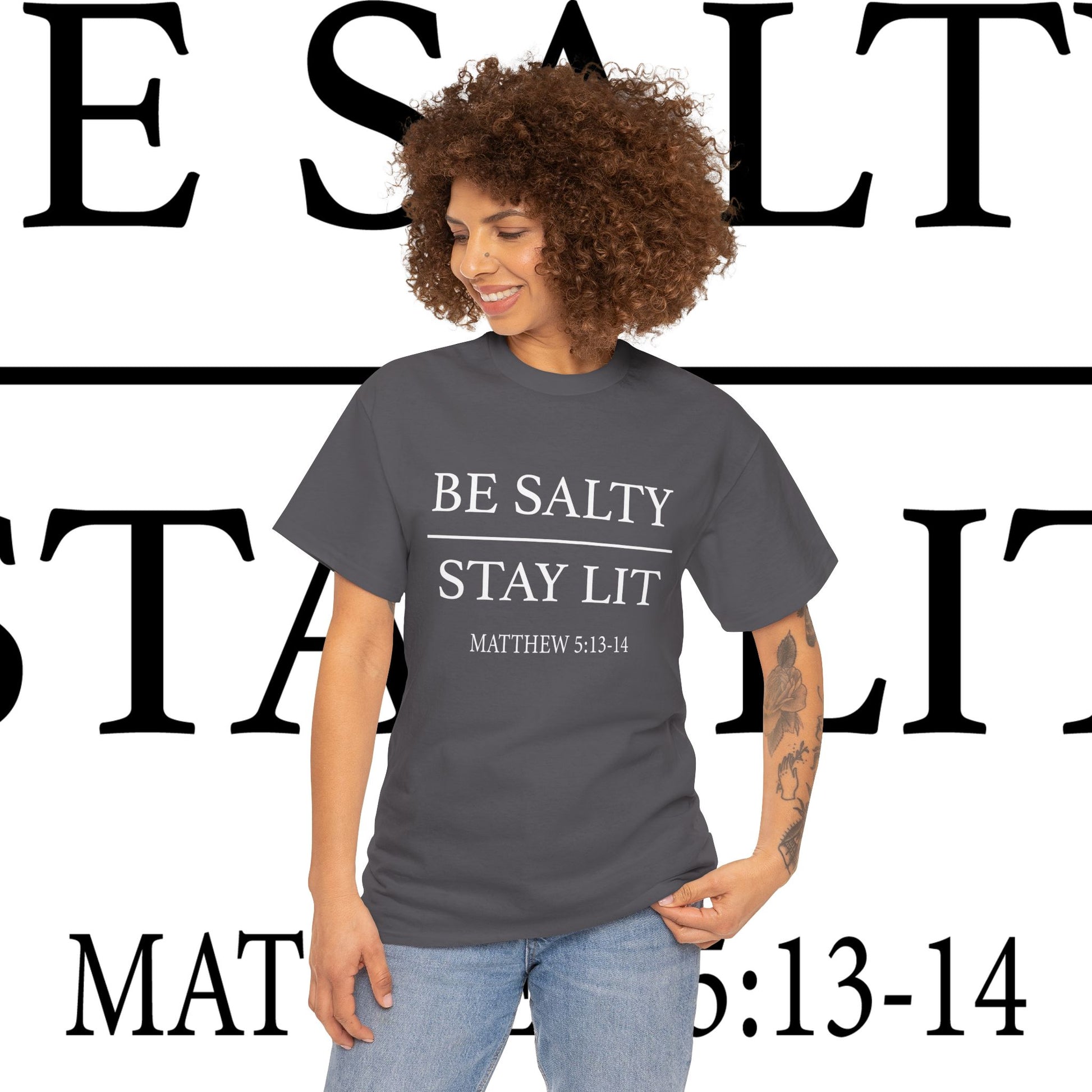 Unisex Heavy Cotton Tee: Be Salty Stay Lit, Casual T-shirt, Trendy Apparel, Inspirational Gift, Everyday Wear