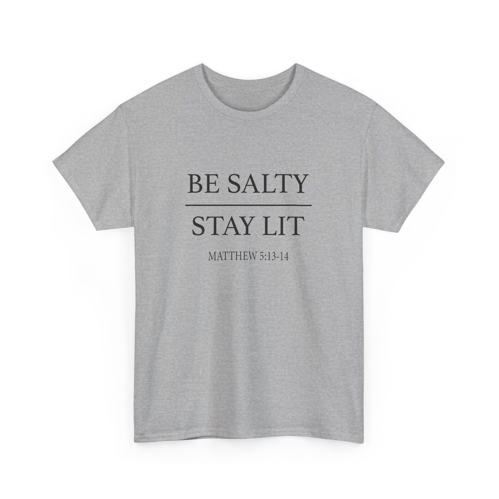 Unisex Heavy Cotton Tee with 'Be Salty Stay Lit' Design - Perfect for Casual Wear, Gifts, Christian Events, Summer Parties, Everyday Style